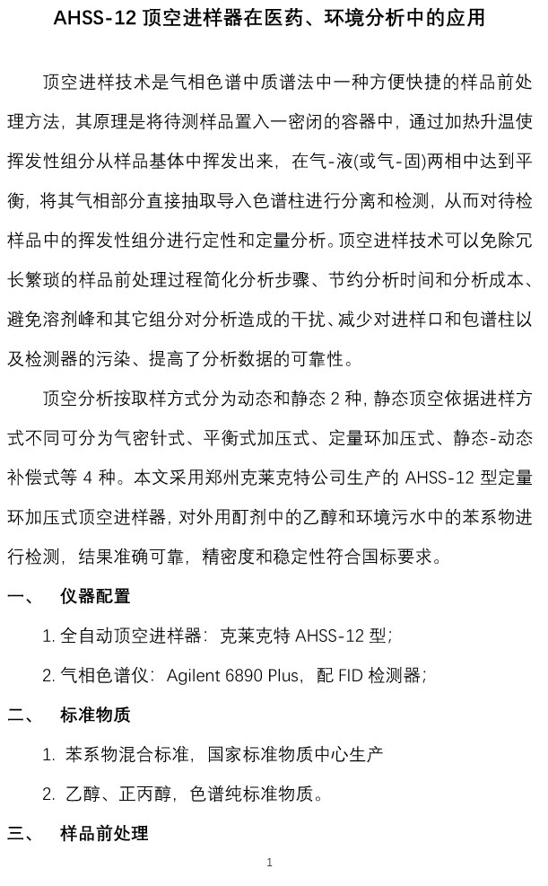 AHSS-12 頂空進(jìn)樣器在醫(yī)藥、環(huán)境分析中的應(yīng)用