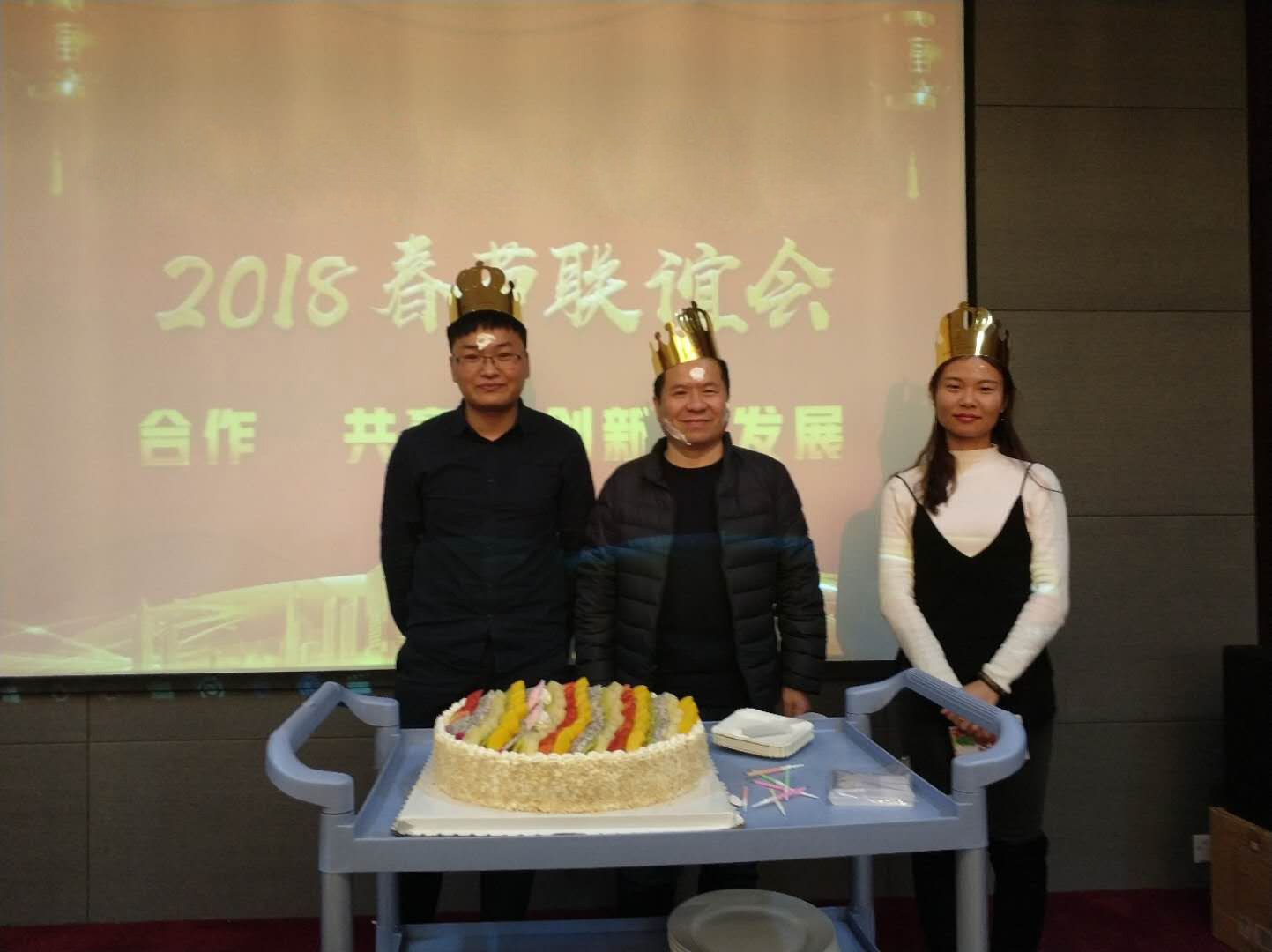恰逢梅總與公司兩位員工生日,克萊克特也為他們悄悄準(zhǔn)備了驚喜:當(dāng)燈光關(guān)閉、蛋糕緩緩?fù)七M(jìn)、所有人齊唱生日歌的時(shí)候,整個(gè)年會(huì)也達(dá)到了高潮。