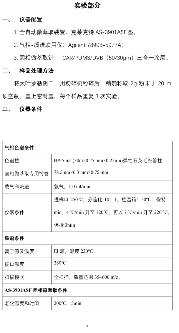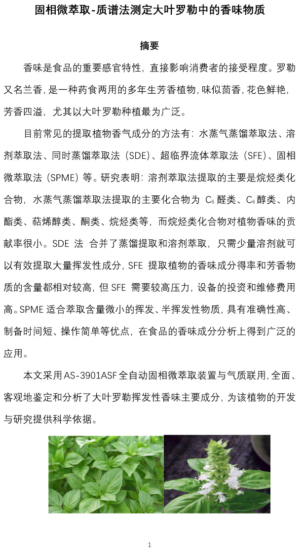 大葉羅勒中的香味物質(zhì)的固相微萃取-質(zhì)譜法測定