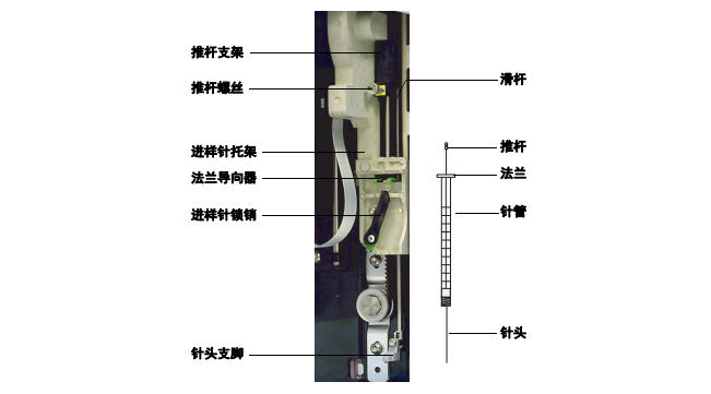 9、手動上下移動推桿支架,如果進樣針推桿未隨著支架移動,重復(fù)之前的步驟,直至正確安裝;