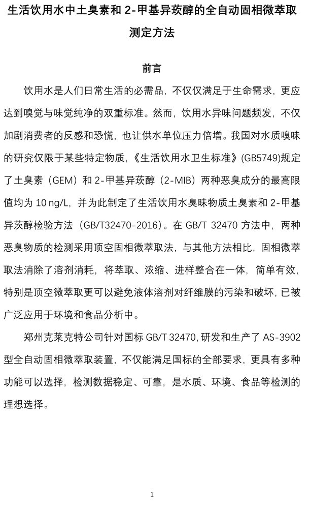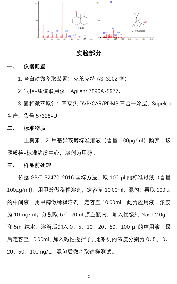生活飲用水中土臭素和2-甲基異莰醇的全自動固相微萃取測定方法