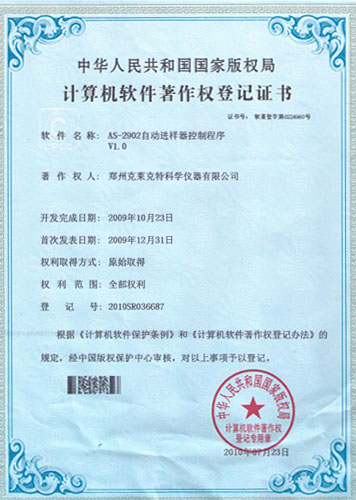 銆愭湰緗戣銆?010騫?鏈?1鏃ラ儜宸炲厠鑾卞厠鐗圭瀛︿華鍣ㄦ湁闄愬叕鍙告帴鍒頒腑鍥界増鏉冧繚鎶や腑蹇?jī)涓嬪彂鐨勫叧浜庢垜鍙镐骇鍝佲楢S-2902閫氱敤鍨嬪鍔熻兘鑷姩榪涙牱鍣ㄢ欑殑璁$畻鏈鴻蔣浠惰憲浣滄潈鐧昏璇佷功銆傛璇佷功鐨勯鍙戯紝鏍囩ず鐫鎴戝叕鍙稿畬鍏ㄤ韓鏈変簡(jiǎn)鈥淎S-2902鑷姩榪涙牱鍣ㄦ帶鍒剁▼搴忊濈殑杞歡钁椾綔鏉冦?